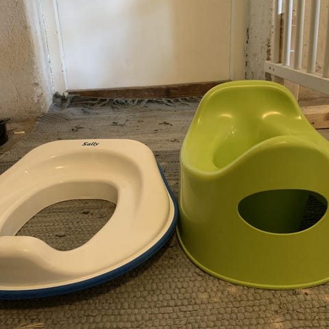 My Carry Potty med rävmotiv i färgerna orange och vit. Tillverkad i plastmaterial. Perfekt för resor eller utflykter med små barn.