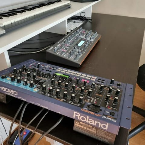 Begagnad Roland MC-202 analogsynt från 1983 i orginalbox