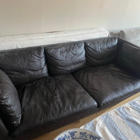 Längd 215 cm, rygghöjd 70 cm, sitthöjd 40 cm, djup 85 cm, (mått med dynor)