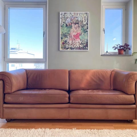 Dynor i mörkbrunt skinn, stomme med kromade stålrör.