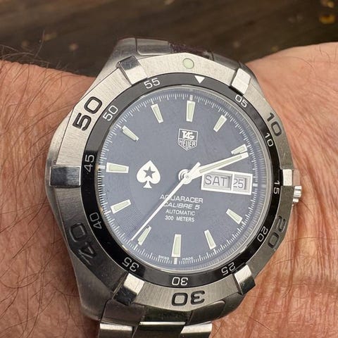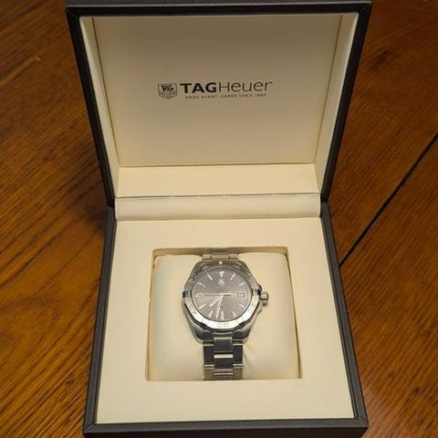 Säljer här en Tag Heuer Aquaracer Chrono i fint skick komplett med låda och cert. Uttagen på Nk i Göteborg 2014.