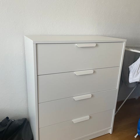 Säljer en byrå med tre lådor från Jysk (bambu/vit).