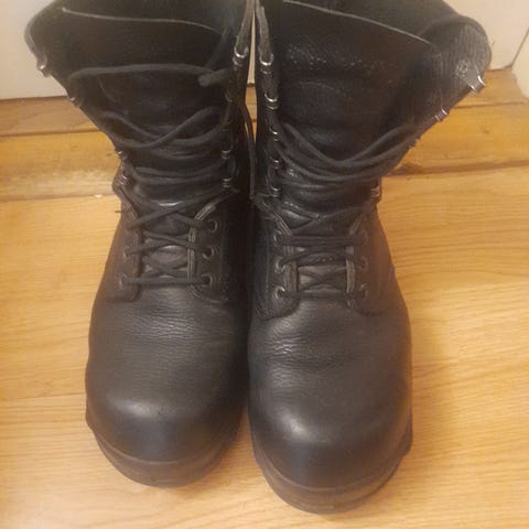 Revolution race vandrings/jakt kängor i mörkgrön och grön beige färg, storlek 42. Kängorna är tillverkade i slitstarkt material och har en robust sula för bra grepp vid utomhusaktiviteter. Passar för vandring och friluftsliv. Lite slitna på kanten av sulorna, Se bilder.