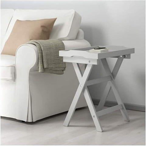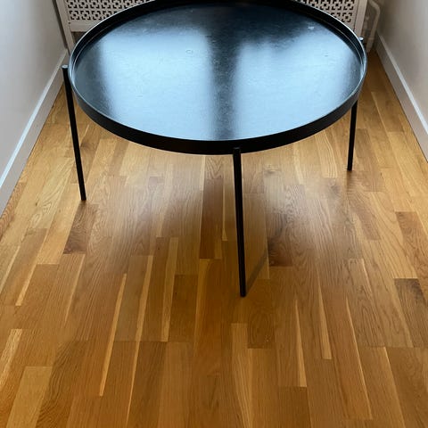 Brickbord mönster i flätad korg i beige färg i metall som är avtagbart. Stommen i metall är hopfällbar. Måtten 50 cm och höjd 43 cm. Några skav på kanten på bordet som egentligen inte är så störande. Kan hämtas på Fridhemsgatan vid Fridhemsplan.
