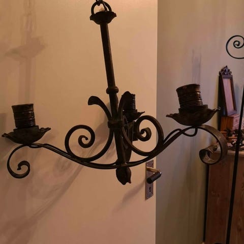 3 armad lampa med hela kupor .Fungerar men elen bör bytas ut.Annars mycket fin.