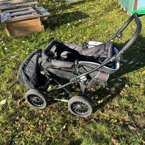 Crescent combi vagn med sittvagn och ligginsats paraply regnskydd kommer från djur o rökfri hem