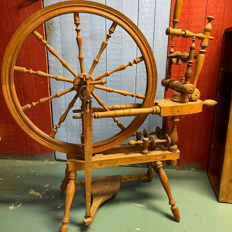 Industriell symaskin för overlock med flera trådrullar och tillbehör för sömnad och kantbearbetning.RESÅRBAND
