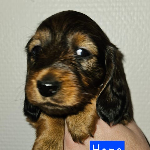 Med ett otroligt tungt hjärta söker vi ett nytt, kärleksfullt hem till vår långhåriga taxhane Milo i färgen crème, född 2025-10-07.