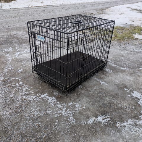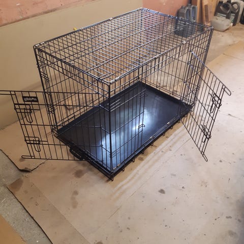 Hundbur i metall.