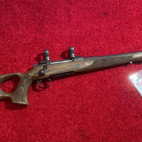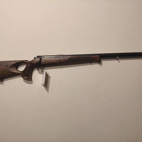 Det är en 101 select i kaliber 308 win med 47cm pipa som är gängad 15x1. Det sitter en eftermonterad kolvkam som även går att skränka i sidled