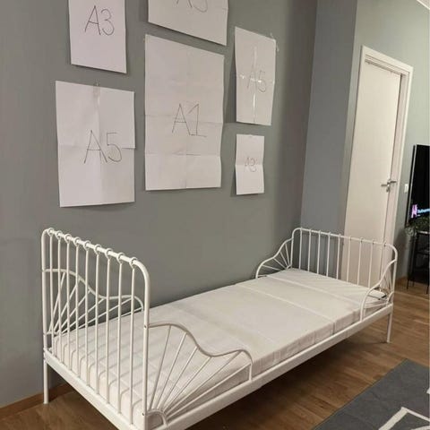 Det är egentligen en utdragssäng som kan bli dubbel men tyvärr har den funktionen gått sönder så det är endast en enkelsäng.