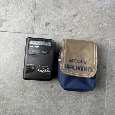 Kolla bilden på den ena ploppen som gått av men kan sättas dit igen. Annars hel och komplett retro walkman från 80-talet med original låda