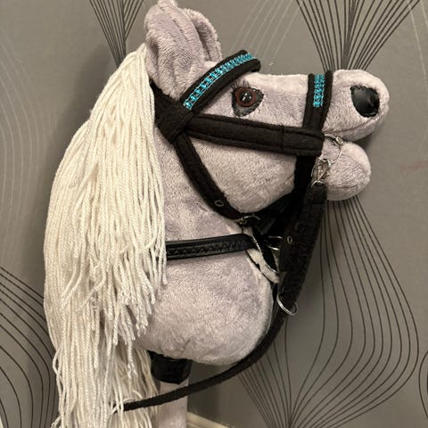 Dottern säljer en käpphäst med träns, grimma, grimskaft och ryktväska