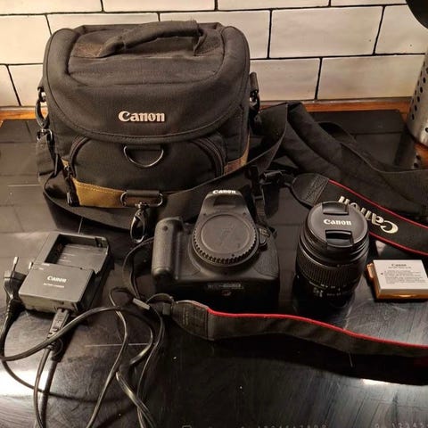 Säljer en Canon kamera med tillhörande objektiv, väska och objektiv pga nyköp. Skärmen är vridbar, perfekt för selfies.