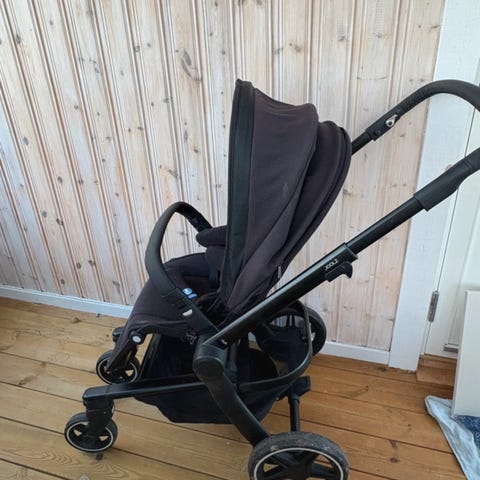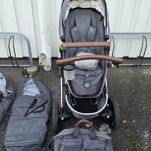 Joolz barnvagn med både liggdel och sittdel i grå färg. Barnvagnen har ett justerbart handtag och är utrustad med hjul för enkel manövrering. Liggdelens insida är vadderad för komfort och skydd. Passar för barn och är designad för att användas både som ligg- och sittvagn. Följer med en åkpåse från Joolz och två regnskydd. En väldigt fin och enkel vagn att köra.