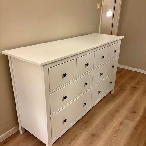 Vit byrå i fint skick! Minns inte vart den är köpt, jag är ganska säker på att det är serien Nordby från Jysk.