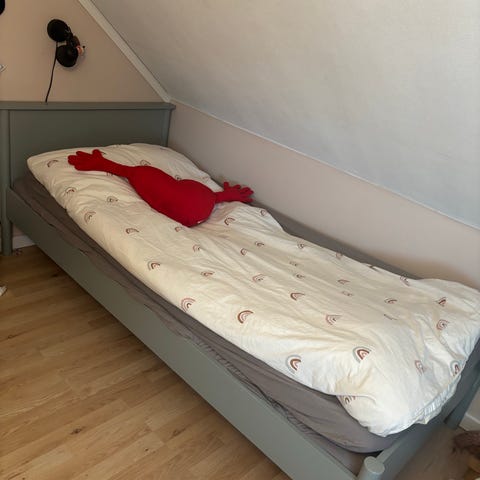Sängen är 90*200 cm och madrass ingår.