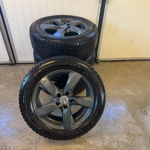 Säljer fälgarna+däcken då jag köpt finare. Mönster runt 5,5mm kvar på alla 4 st & dubben är schyssta. Fälgarna har sett bättre dagar men ingen obalans elr spricka/svetsade. Suttit på min v70 2016.