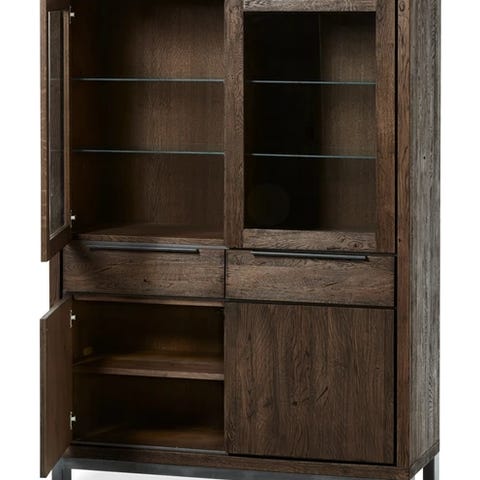 Alessi Aage Petersen soffbord och vitrinskåp i vitt utförande. Möblerna har glasdetaljer och förvaringsutrymmen. Passar för vardagsrum och erbjuder både funktion och stil.