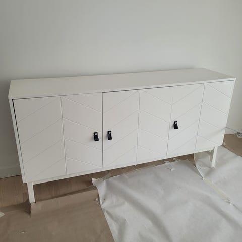 Jag skall snart flytta och behöver göra mig av med en del möbler. Bla en designmöbel från Boconcept. Det är en elegant sideboard i matt vitlack i mycket fint skick. Den är 154 cm bred, 48 cm djup och 74 cm hög. Den har tre lådor och en dörr.