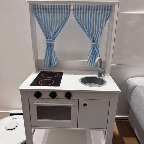 IKEA Duktig lekkök i vit färg. Köket är utrustat med spis, ugn och diskho, designat för barnlek. Tillverkat i material som är anpassade för barnmöbler.