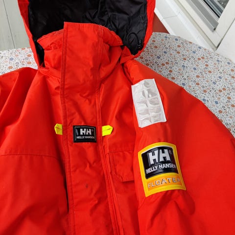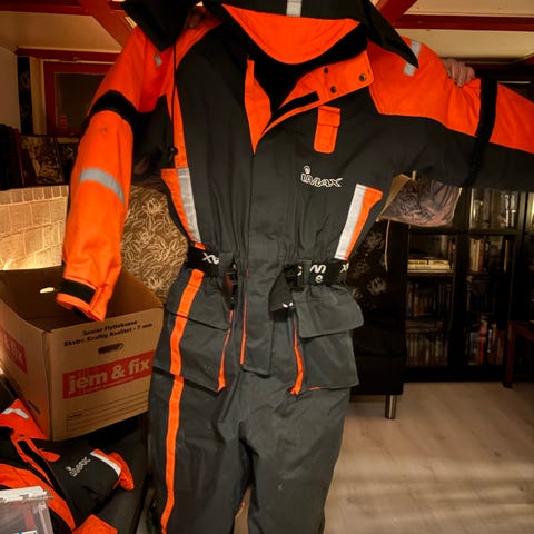 Flytoverall fladen, som ny, använt max.tre gånger. Storlek L, passar som XL också.