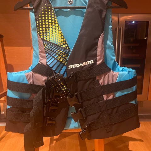 Sea-Doo XSTP flytväst i svart färg. Tillverkad i Kina. Flytvästen är utrustad med justerbara remmar och är avsedd för användning vid vattensporter för att öka säkerheten.