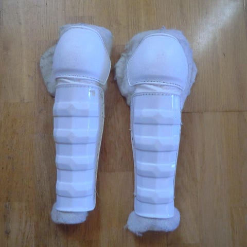 Använda men funkar som de ska och utan defekter. Spänns med karborrespännen som också funkar som de ska. Finns många timmar kvar på isen med dessa benskydd.