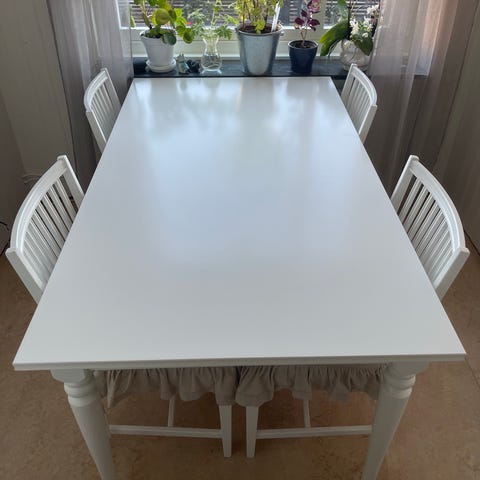 Säljer mitt underbara matbord. Vill verkligen inte, men det får inte plats i nya huset. Köpt för ca 8 år sen på Ikea och det har några få skav, men stabilt som tusan.... och TUNGT!