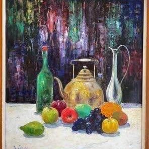 Beautiful, large-scale vintage oil painting featuring a moody, atmospheric seascape. This piece has a fantastic mid-century modern (MCM) feel with a muted tonalist palette of greys, whites, and soft ochre.