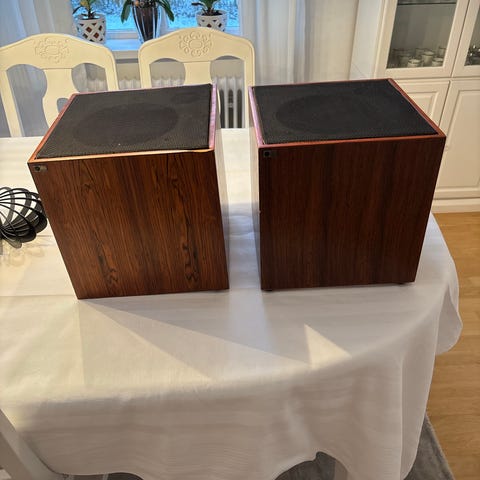 Fina rundstrålande vintagehögtalare, inspirerade av Carlssons klassiker. Välljudande element från Seas. Även utrustade med 10" baselement I botten.