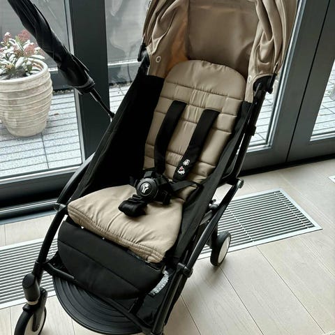 Stokke yoyo3 med svarta tyger och svart chassi.