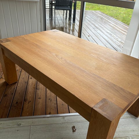 Ett gediget soffbord i massivt ekträ med svart granitskiva i mitten