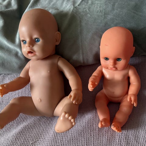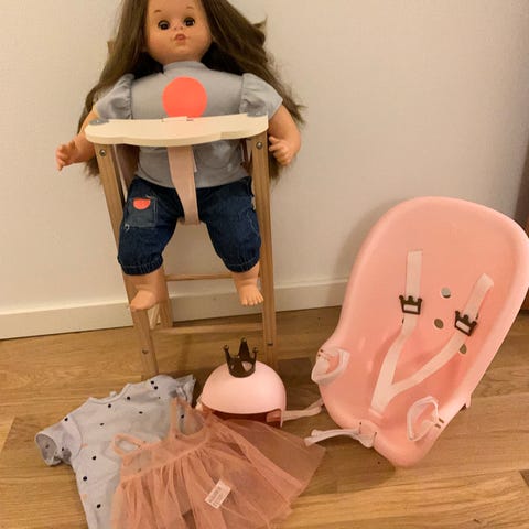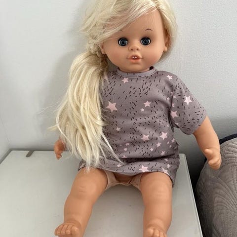 Baby Born docka klädd i rosa kläder. Dockan har långt blont hår och är avsedd för barn.