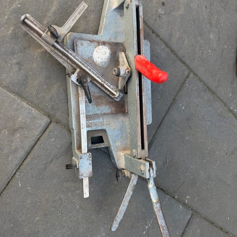 Laminatskärare i bra skick. Plankorna kan vara max 210 mm breda och 11 mm höga. Går även att längdskära med.