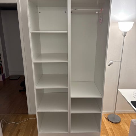 Vill sälja två PAX Garderober med hyllplan, nypris för allt är 2240kr.