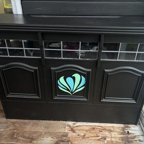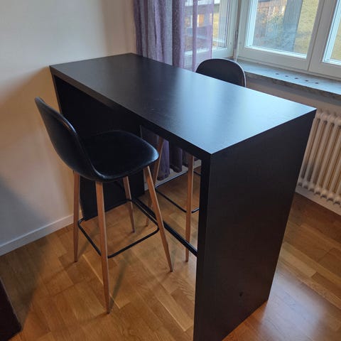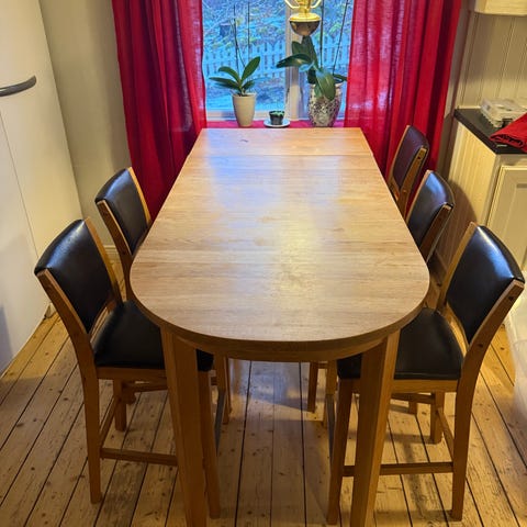 Trämatbord / Barbord inkl. fyra trästolar med skinndynor