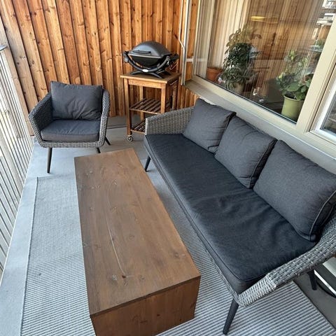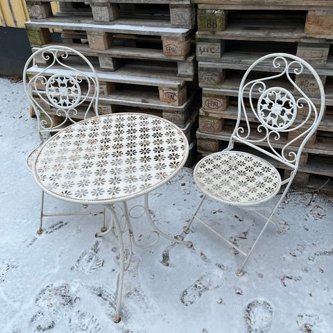 Möblerna har förvarats inomhus under vinter och är sparsamt använda.