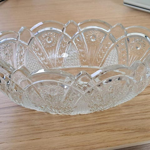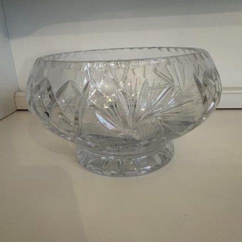 kristall, skål, signerad, handgjord, tung, dekorativ, samlarobjekt, vintage, retro, kristallglas, design, inredning, present, 18 cm, 1.9 kg, Sverige