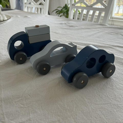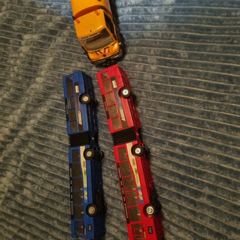 Set med leksaksbil och husvagn i olika färger och modeller. Innehåller en husvagn och flera små bilar i plastmaterial. Passar för lek och samling.