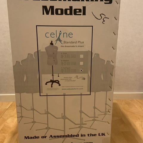 Mannekäng med klädd överdel och justerbart trästativ. Passar för visning av kläder och accessoarer i butik eller hemma. Har använts i konfektion för framställning av kläder.