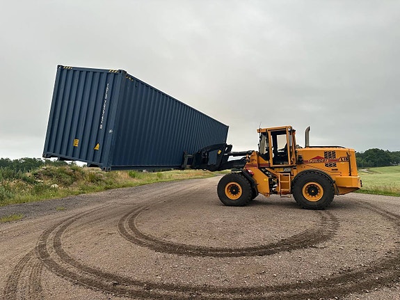 Containern flyttas enkelt med lastbil, kranbil , hjullastare , lastare , traktor , grävmaskin , traktorgrävare , hjulgrävare