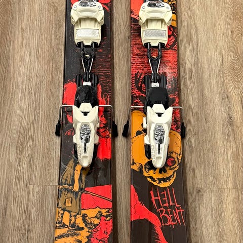 Mina extremt feta K2 Hellbent samt stavar går lätt ner och men lite vilja mina Völkl Kuro som är 195 cm. Troligen för att gavlarna är mjuka. Det funkar även att stoppa ner kläder runt skidorna vilket jag gjort när jag rest och optimerat min packning.