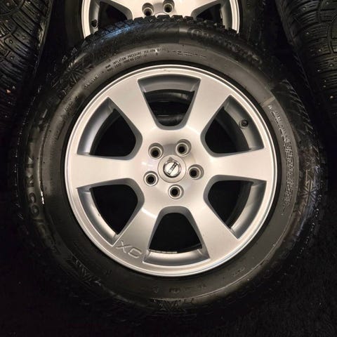 Vi erbjuder en komplett uppsättning 16-tums original Volvo XC70 aluminiumfälgar utrustade med premium friktionsdäck av märke PIRELLI ICE ZERO R ett av bästa friktionsdäcken i märknaden.