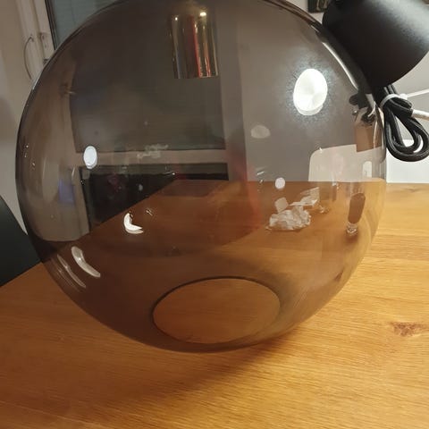 Elegant taklampa med en diameter på 55 cm. Dekorativ, rund design som ger ett varmt och stämningsfullt ljus. En stilren lampa som passar perfekt i vardagsrum, sovrum eller matsal. I gott skick.