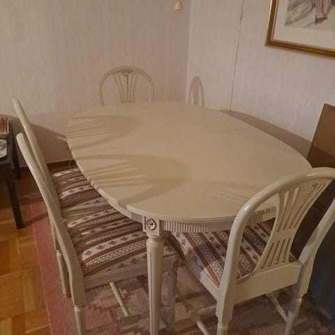 Säljer ett vackert gustavianskt matbord med tillhörande 4 stolar i klassisk stil.