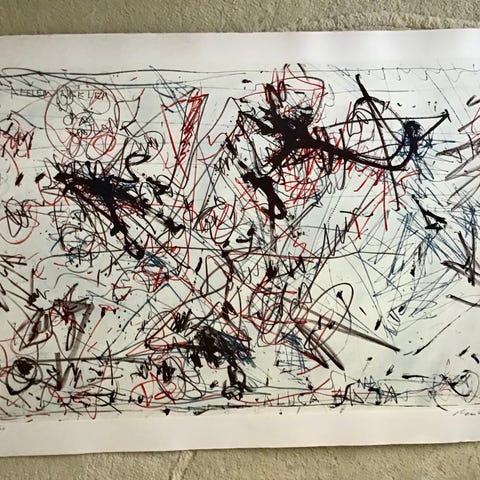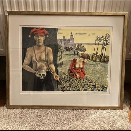 Här ett landskap i svart/ natur . Daterad och signerad . Kan skickas som konstnärsrulle, dvs utan ram lätt rullad och nerlagd i en tjock papprulle om så önskas. Då drar jag av 300 kr för ramen. Annars gäller hämtning även genom bud. Av säkerhetsskäl och tidigare erfarenheter skickar jag inga stora tavlor i ram. Kan skickas i papptub utan ram .