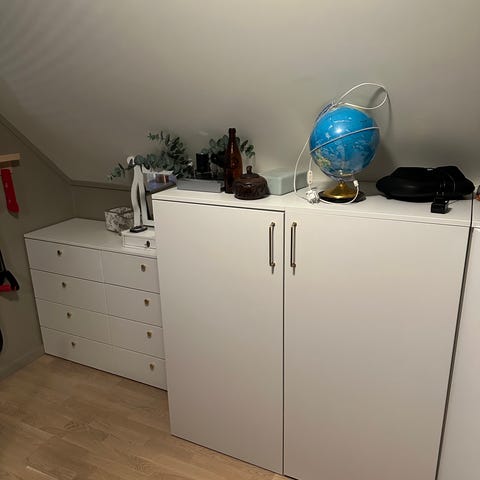 Platsa garderobs kombinations 3st 60*55*60 3 st 60*55*40 Samt en 80*55*180, har haft den först som en trip,trapp,trull lösning under en trapp och nu uppdelat enligt bilder men gå atr flytta runt i princip som man vill! Slumpas bort inför flytt