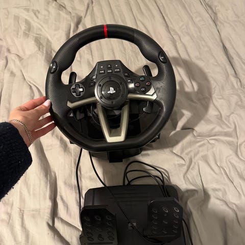 Hori racing wheel apex fungerar för playstation konsoler. Är i mycket bra skick då den bra har används en gång och fungerar som ny.