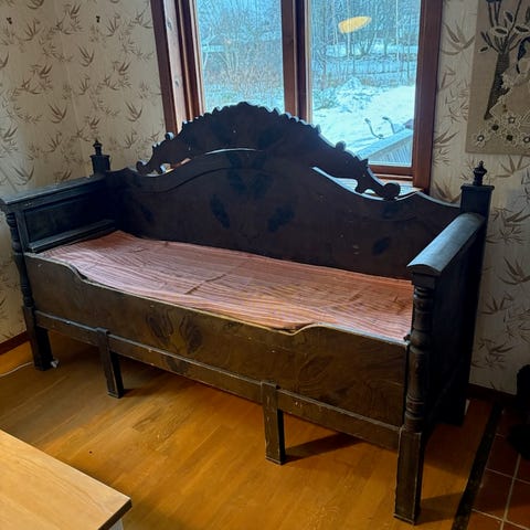 Standardkökssoffa. Använd som sängkammare till 80+90 resårmadrass. Förvaring under locket.